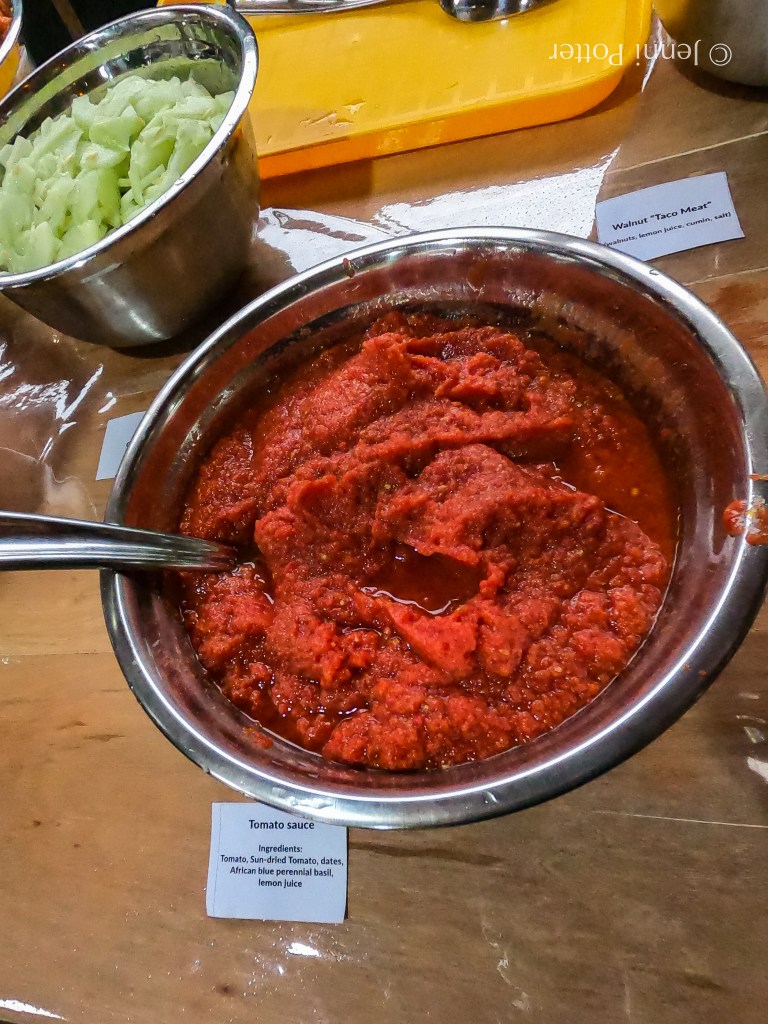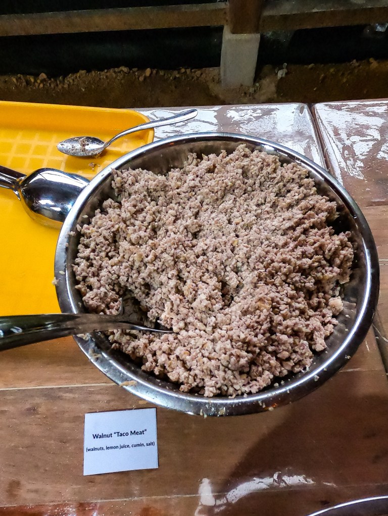 Dinner – The best and biggest meal of the day, most likely planned to mimic our westernised lifestyle of having a big dinner. For South Americans, lunch is the main meal of the day, allowing more time to digest and not having to do so before bed. The raw vegan gourmet chef did a fabulous job. My favourite food there was raw vegan garlic bread, (absolutely incredible) the make-your-own pizza, and the fake meat made from walnuts (YUM!). Generally I’d eat about 2 or 3 big bowls full, since you need to eat more than usual to extract enough nutrition and I would be very hungry again by this point! We generally had something for dessert too – vegan cinnamon rolls, energy balls or even vegan ice cream!
