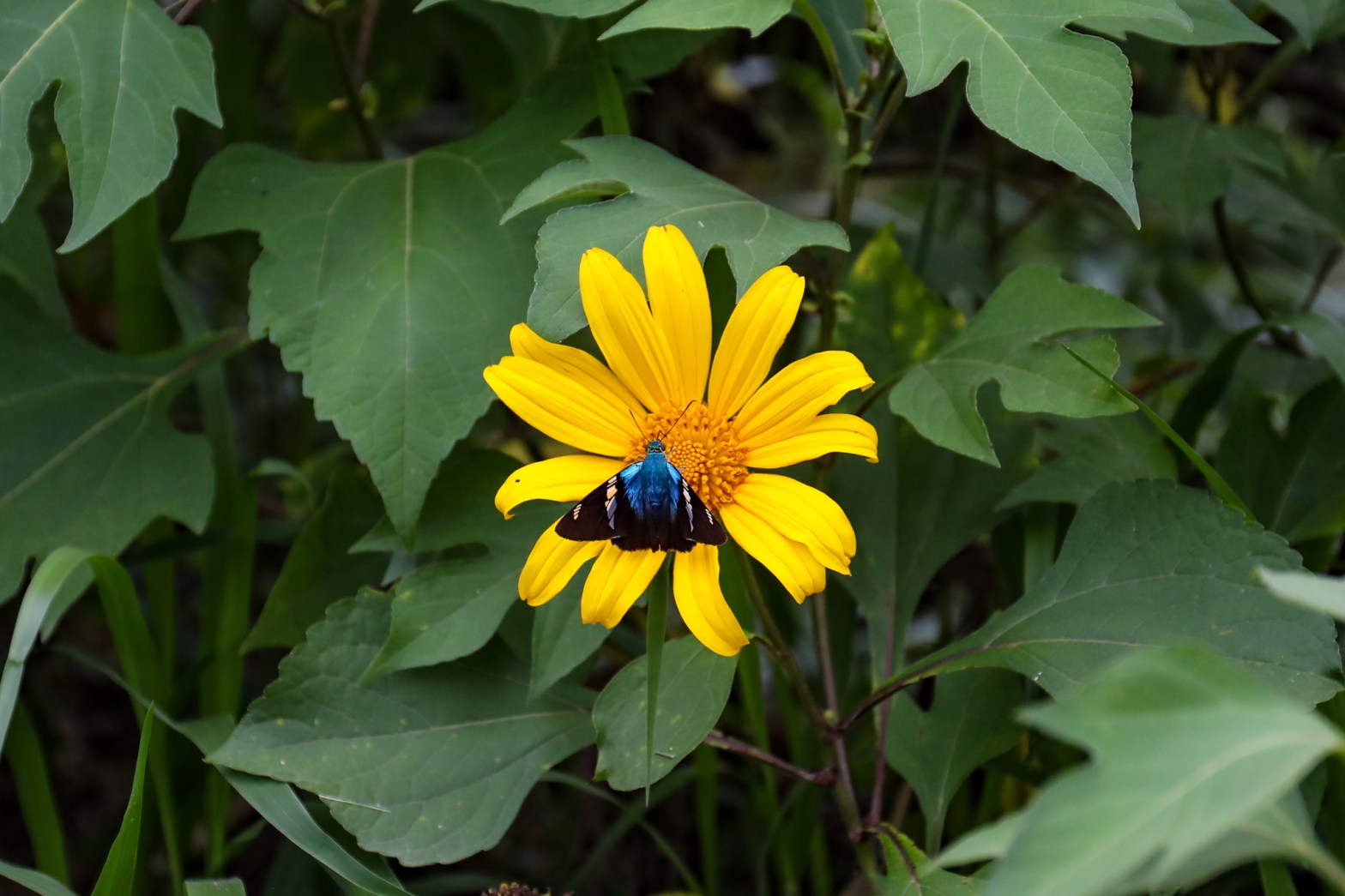 The biggest, brightest and most beautiful butterflies are the most anxious and thus the hardest to get any footage off. These were big incandescent blue butterflies, obviously the most noticeable and enticing to predators, that took off as soon as you looked at them. I managed to get a few precious photos before they deemed me too threatening for their liking.