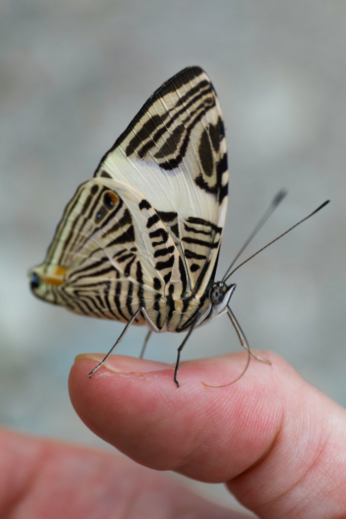 My favourite was Bonita the butterfly. A gorgeously patterned little madam who, enticed by my butterfly leggings, decided I was a flower and rode on my hand all the way back to the community centre, lapping up the sweat from my hand. Charming. It was a special moment and felt slightly tickly and very delicate. It’s crazy how such stunning, delicate creatures can be so attracted to disgusting things! Those who wish to attract butterflies need not bother with offerings of sweet nectar, the pungent aroma of a urine-based drink will work wonders! (Disclaimer, I did not do this.)