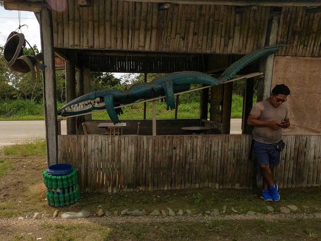 A wild Ecuadorean Croc at the sugarcane stop