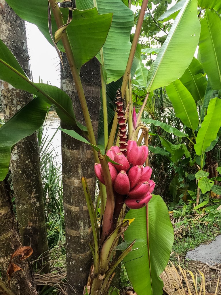 We disembarked before a wide river and a long suspension bridge over it. Bouncy at the best of times, it’s not a place you’d wish to linger on too long. On the other side, is one of the fruit haven plots, where a couple who’d attended the festival were constructing their own house in paradise, with their very young son (my new friend). The view from their property is drop dead gorgeous.